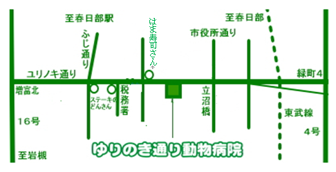 ゆりのき通り沿い。税務署の西400m、立沼橋からは東へ300m。中央8丁目バス停前。